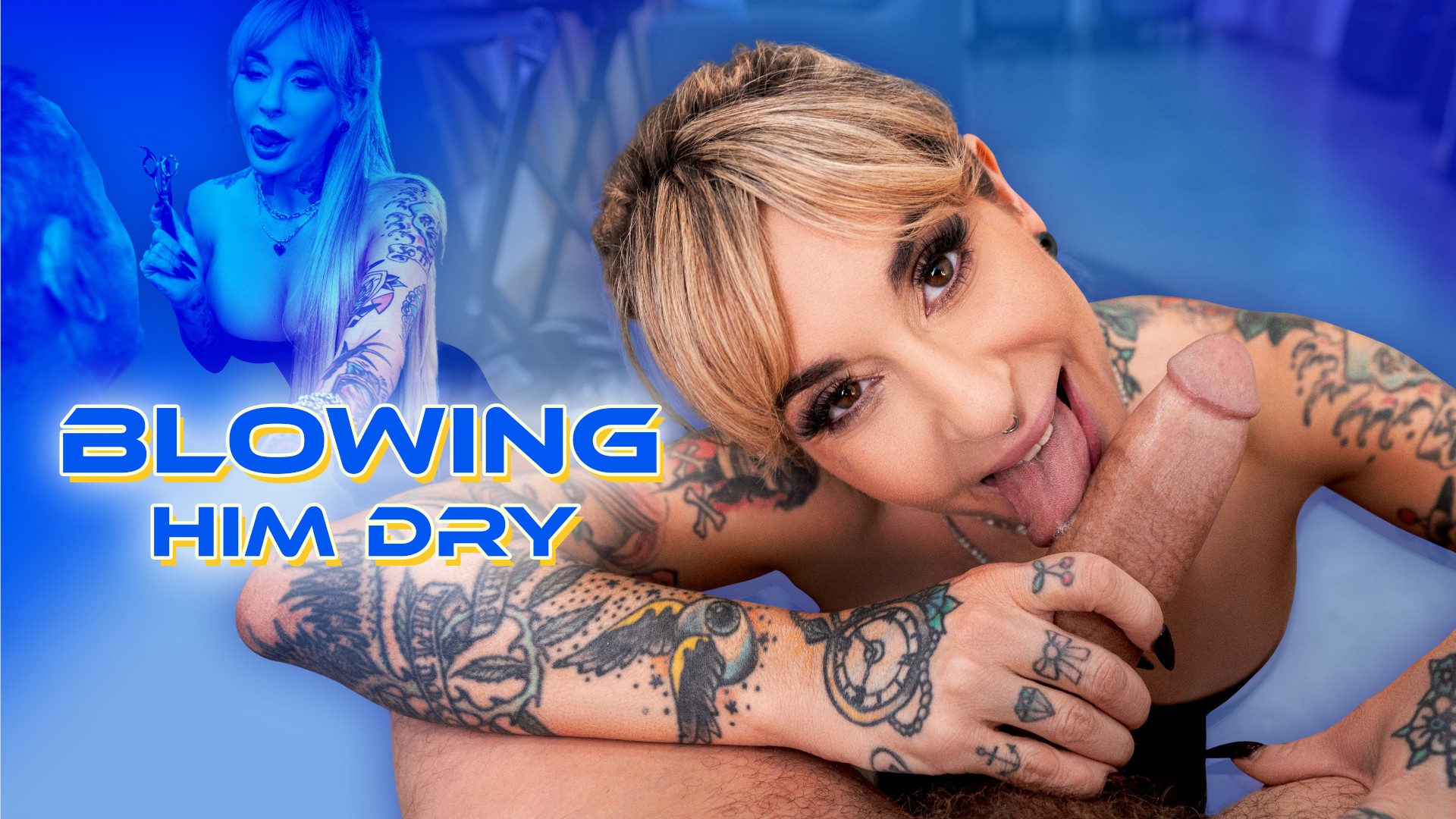 Your new fiancée brings you along to her makeover appointment at Joanna Angel’s salon. While your fiancée gets pampered in the back, you’re left in Joanna’s skilled hands. Joanna offers to do a little bit of manscaping for you at no charge, but when she sees your big dick her plans quickly change, leading to a sneaky blowjob and fucking!
